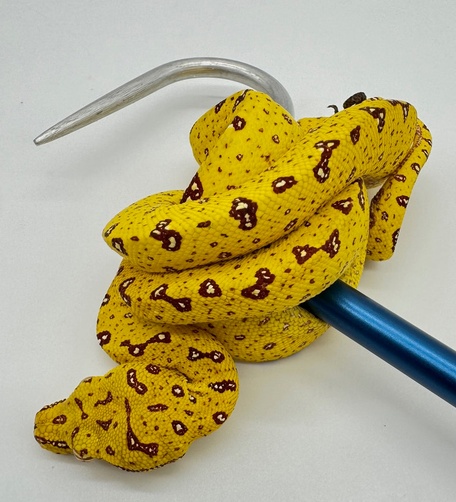 This Baby Biak Green Tree Python is from bushmaster farms and is feeding on large fuzzy mice.